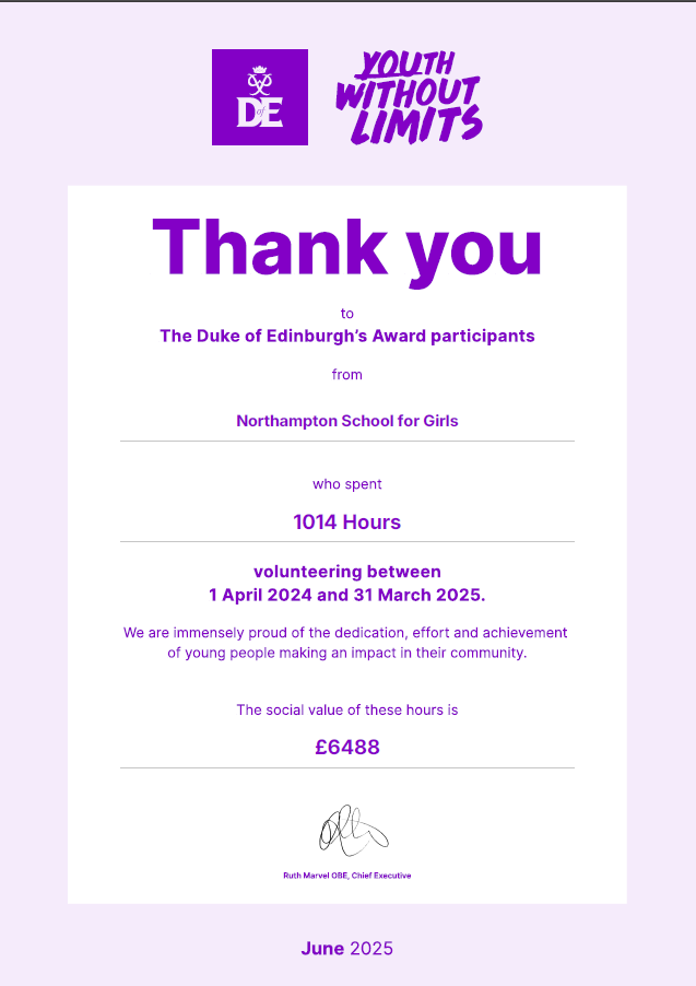 If you have any questions about the award please contact Mrs Bright, our DofE Manager DofEManager@nsg.northants.sch.uk